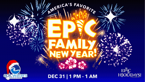 Ring In 2026 With a Splash at Epic Waters Epic Waters Indoor Waterpark – New Year’s Eve Celebration Dec. 31 1 p.m.–1 a.m. $59 per person (includes all indoor slides, attractions, and live entertainment) Splash into 2026 at Epic Waters Indoor Waterpark during a New Year’s Eve celebration filled with giveaways and games, live entertainment, and family-friendly activities for all ages—plus the waterpark’s signature slides and attractions, featuring thrills from mild to wild. From 1 p.m. to 1 a.m., guests can slide, surf, and splash, enjoy pop-up performances from the high-energy Circus Spectacular, and count down to the new year with multiple Duck Drops at 3:30 p.m., 6 p.m., and midnight. The celebration also includes a festive buffet and more than $10,000 in giveaway drawings and duck race prizes such as day passes, annual passes, birthday parties, cabana rentals, and elevated VIP experiences with hotel stays. Pro tip: Upgrade your visit with a private cabana rental—but book early, as they sell out quickly. Plan your perfect New Year’s Eve at epicwatersgp.com